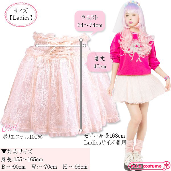 原宿系カリスマモデル「AMO」がプロデュースする新ブランド「LUNATICLEMONYLOLLIPOP」からスワンプリンセススカート(ベビーピンク)が登場。パーティウェアとしてはもちろん、日常のファッションにも取り入れやすいボリュームスカートでとってもキュート♪ウエストの編み上げや繊細なレースを使用するなど、ドレッシーに着こなしていただけるデザインとなっています。コーディネイトしやすい優しい色合いのピンクがキュートでウエスト部分がゴム仕様となっているためとても着やすいです♪※洗濯機不可、弱い手洗い可、塩素系漂白剤による漂白不可、アイロンは中温で当て布使用、ドライクリーニング不可