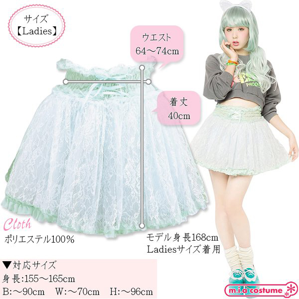 原宿系人気モデル「AMO」がプロデュースする新ブランド「LUNATICLEMONYLOLLIPOP」からスワンプリンセススカート(ベビーブルー)が登場!イベントなどのパーティウェアとして、また、日常のファッションにも取り入れやすいボリュームスカートです。随所にこだわりが感じられ、ウエストの編み上げや繊細なレースを使用するなど、ドレッシーに着こなしていただけるデザインとなっています♪甘すぎないベビーブルーのカラーがコーディネイトを引き締めてくれます。ウエストがゴム仕様なのでとても着やすいですよ♪※洗濯機不可、弱い手洗い可、塩素系漂白剤による漂白不可、アイロンは中温で当て布使用、ドライクリーニング不可