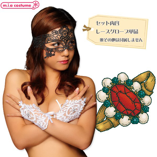 非日常を演出するのに役立つmagicaldollpremium(マジカルドールプレミアム)シリーズからレースグローブLily(ホワイト)が登場。あしらわれた模様が可憐で純潔なイメージのレースグローブで、長く美しい指と腕を主張するときにも役立ちます♪中指を通して手の甲に装着するタイプのレースグローブとなっています。※中性洗剤で手洗い(水温30℃)、塩素系漂白剤による漂白不可、アイロン不可、ドライクリーニング不可、日陰のつり干しが良い