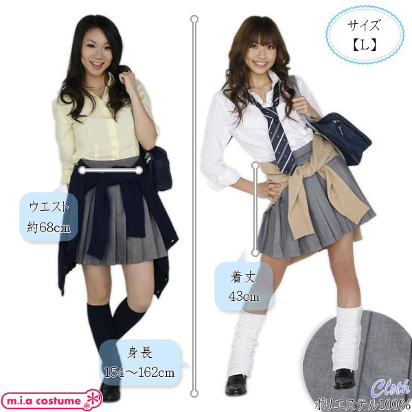 Lサイズ 対応サイズ:154〜162cm 実寸:W約68cm・着丈43cm セット内容:スカート単品(左脇ファスナー) 素材:ポリエステル100%