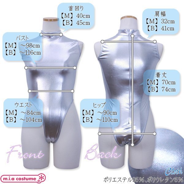 BIGサイズ:B〜116cm・W〜104cm・H〜110cm・肩幅41cm・首周り45cm・着丈74cm セット内容:レオタード単品(後ろファスナー) 素材:ポリエステル95%、ポリウレタン5%