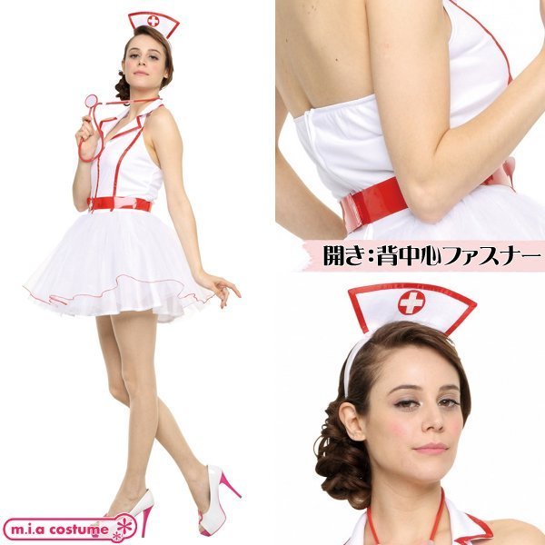 Pipi−fitchのコスチュームがあなたをポップでキュートな別世界へ誘う♪ふんわり広がるギャザースカートが可愛いナースコスチュームです。ハロウィンパレードや仮装イベント用のコスプレ衣装として、撮影会や余興、催事にもどうぞ。聴診器もついていてお得なセット商品です♪※水洗い不可、塩素系漂白剤による漂白不可、アイロンは低温で当て布使用、ドライクリーニング不可、色落ちの可能性があります。※こちらの商品は在庫の状況によりお届けまでに4日〜7日程度かかる場合がございます。
