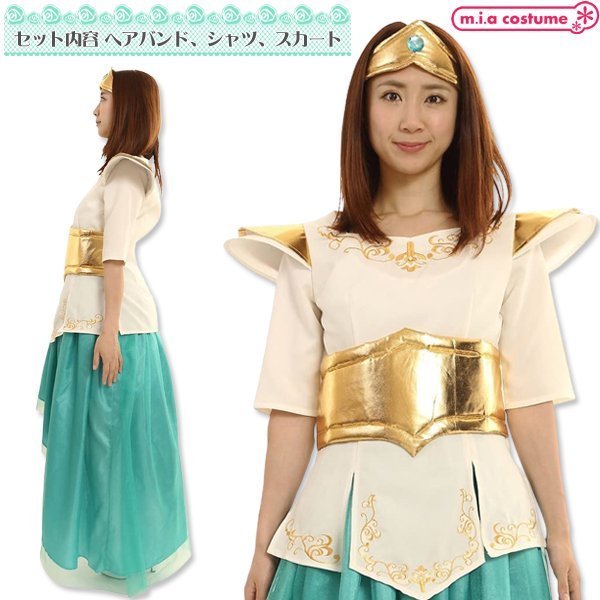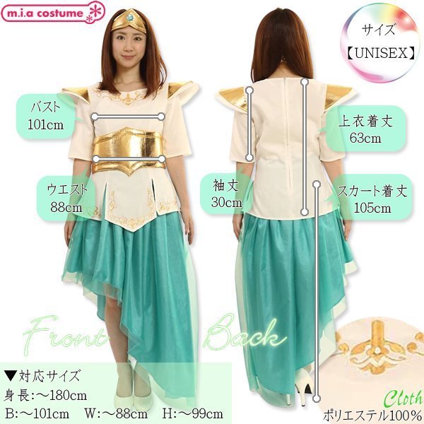 男女兼用サイズ:身長〜180cm・B〜101cm・W〜88cm・H〜99cm・着丈(上衣63cm・スカート105cm)・袖丈30cm) セット内容:上衣(背中心ファスナー)、スカート(ウエストゴム)、ヘアバンド 素材:ポリエステル100%