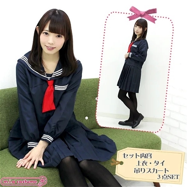 とある小学校の冬制服の赤タイ版が登場です。紺地に赤色はとっても映えます!シンプルなセーラー服ですが、吊りスカートがセットになっている本格派♪つくりはかなりしっかりとしているので本物と区別がつかないくらいのクオリティの高さです☆もちろん上下セットでお買い求めいただけます。※水洗い不可、塩素系漂白剤による漂白不可、アイロンは中温で当て布使用、ドライクリーニング可、色落ちの可能性がありますのでご注意ください。