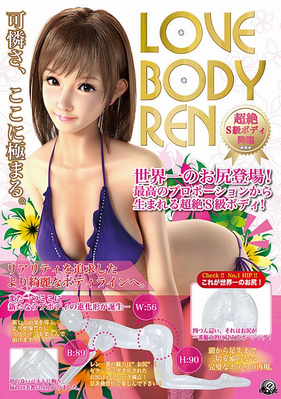 世界一のお尻を持つ、エア・ダッチワイフ誕生!その名も「LOVE BODY REN(ラブボディ レン)」。ラブボディシリーズ初の頭部を導入!美乳に拘ったバストラインなど、頭からつま先まで一切の妥協のない超絶S級ボディに仕上がりました。ポージングはお尻が最も魅力的に見える四つん這い!エロさ抜群のお尻は、ぜひバックでお楽しみ下さい!※LOVE BODY REN専用オナホール(e08297)は付属しておりません。