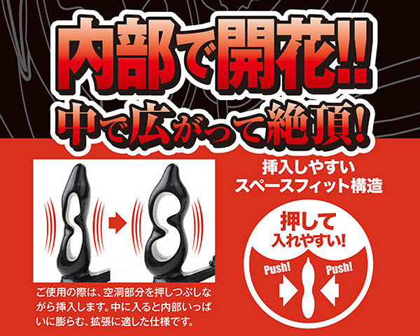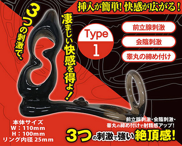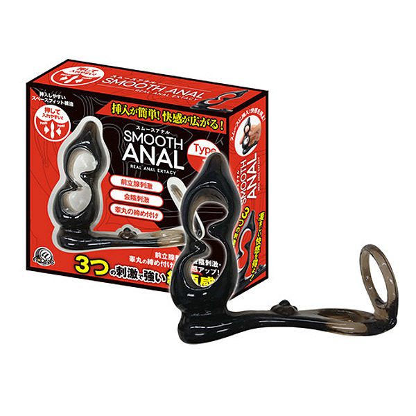 楽々スムース挿入&中で広がって絶頂!拡張に適したリング付きアナルディルド「スムースアナル Type1」。中央の空洞部分を押しつぶして細身にすることで挿入しやすく、挿入後は内部いっぱいに膨らむ『スペースフィット』構造を採用。プラグの凸凹カーブが前立腺を、リングが睾丸を、突起が会陰部を刺激する3点責めの超快感アナルグッズです。
