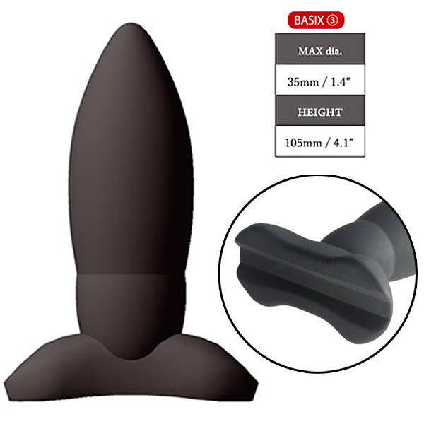 純シリコン素材100%の大人気ボスシリコンシリーズ!アナル拡張に最適な座薬フォルムのアナルプラグ「ボス シリコンベーシックス3」。ベーシックシリーズはまるで座薬のように『挿れやすく留まりやすい』絶妙な角度に設計されたボディが特徴!また、最大径とくびれ部分の差を小さくする事でより拡張に適したアイテムに仕上がりました。さらに、Tバック等の下着で固定しやすいよう、プラグの底部にスリット加工を採用!挿入したままでも安定感のある使い心地を実現しています。丁寧に作り込まれた形状や純シリコン素材を使用したコシのある柔らかさなど、圧倒的なボスクオリティをぜひご堪能下さい。