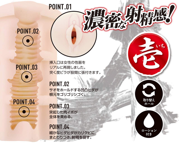 好きなホールでカスタマイズ。ピストンキング電王の専用ホールが3種同時に参上!!濃密な射精感が楽しめる壱は、サオに絡む擦りつけTYPE!!※こちらの商品はオナホ単体でも楽しめますが電王(e25149)に装着することでポテンシャルを発揮します。※ピストンキング電王本体は別売りです・ローション付属