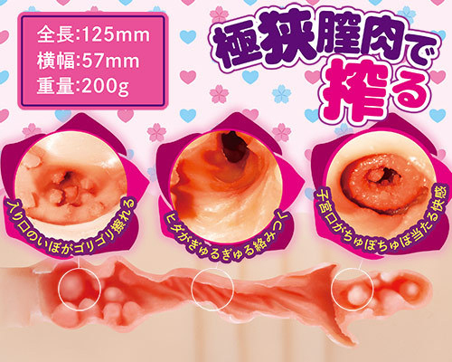ハンドサイズで持ちやすい!極狭膣肉でキツく締め付け搾り取る高弾力な非貫通オナホ(日本製)。小イボが密集したゴリゴリ擦れるカズノコ空間と螺旋を描くように配置したヒダで圧迫しながら刺激!最奥では子宮口のチュチュっと吸い付く快感が味わえる♪ローション付属
