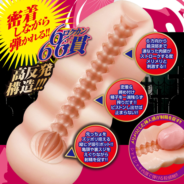 ピストンが止まらない程の挿入感!吸淫リリス、衝凸ラミア、カリ責ベリアルに続く6連小悪魔シリーズ第4弾!世界全体を破滅へと導いたビラバーンの悪戯孫娘・大淫婦ピシウスが秘技を携えて淫らに姿を現した。メリメリとした挿入感&シャキシャキと弾ける粒感触。密着しながら弾かれ、ピストンしたら止まらない。苛烈を極める6方向からの肉ヒダ突起がヤバイ射精感を煽る!さらに狭穴さ故の締めつけ感がノンストップな搾精刺激を与えストロークを止められなくなるかもな魔性を秘めた非貫通オナホール!
