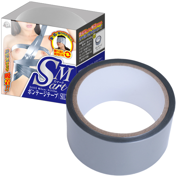 初めての方でも簡単!静電気を利用して拘束する銀色のボンテージテープ。全身をグルグル巻きにできる15mサイズ!SMartシリーズと一緒に使えばプレイの幅がもっと広がります♪繰り返し使用可能