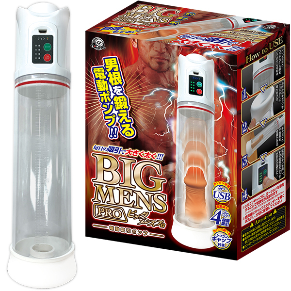 男根を鍛える電動ポンプ!!吸引は選べる4パターン!!初心者から上級者まで自身の成長ぶりに合わせて無理なくトレーニングができます。自身に自信が持てるよう、毎日コツコツ吸引しよう!シリンダーには、わかりやすいセンチ表記のメモリ付き。サイズアップを実感できてモチベ―ションもアップ。シリコンキャップは自身のサイズによって選べる2サイズ。根元に優しくフィット。シリンダーから外して洗えるので清潔に保管できます。コントローラーは簡単操作のワンプッシュ。吸引の長さを調整できます。充電は差し込むだけのUSB充電式充電時間:約120分/連続使用時間:約90分。※個人差がございます。長時間・過度のご使用はお控えください。体に合わない場合にはご使用を中止してください。
