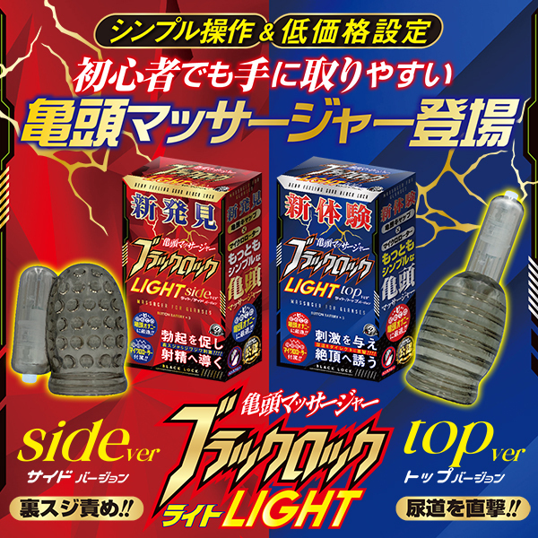 亀頭を刺激するキトニーローター「ブラックロック」のライト版、「ブラックロック ライト」が登場♪マイクロローターをポケットに装着する仕様でサイドとトップの2タイプを展開!こちらはトップバージョンで、尿道周辺を振動するポケット位置が特徴。付属のローターはワンボタン操作のシンプル設計で、トップはズバリ尿道周辺を振動刺激♪キャップ内は凸凹の溝があり、キャップを通して亀頭全体を振動刺激するようになっています!装着感のいいキャップにプライス感のある低価格帯!これを使ってスローオナニーや亀頭弄り、勃起を促すも良し♪他にはない新感覚をぜひ発見してください。