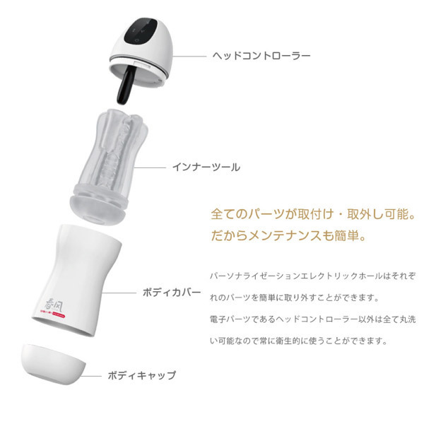 人間工学に基づき設計されたUSB充電式の「tryfun パーソナライゼーション エレクトリックホール」は、人気のメンズマックス(Mensmax)が手掛けている商品。温度機能や4種の振動、3段階のバキューム機能を搭載!タッチパネルで好みの気持ち良さを再現できる♪緩やかな曲線を描いたフォルムは握りやすく、別売りのインナーツールがあれば違った快感を堪能することも。メンズマックスと言えば人気のシリーズ「メンズマックススマート」を一新した「ギア」も、捻るだけで好みの締め付けが味わえると好評!良ければぜひどうぞ。※充電ケーブル、説明書、ローション2袋付属