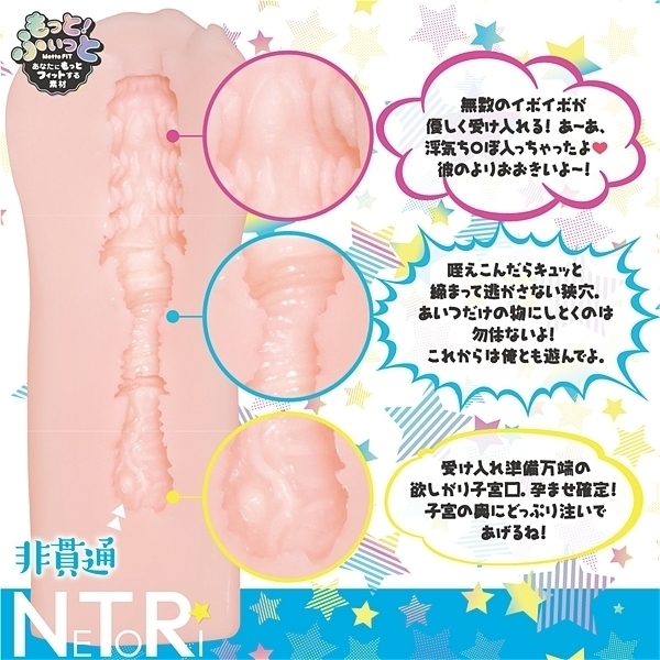 もしも親友の彼女が誘惑してきたら…そんな淫乱女をイメージさせる欲しがりホール!ちょいちょい誘ってくる、親友のエロい彼女を寝取り三昧!挿入口付近は、密集した無数のイボがくっぽり咥え込んで奥へと誘うイボイボゾーン。中ほどはキュっと括れた細道を横ヒダが埋め尽くし、ゾリゾリ擦り上げる高刺激ゾーン。さらには最奥の孕まされたがりなキュポキュポ子宮ゾーンで強制発射!350gの肉厚ボディがギュ〜っと密着する欲しがりホールです。