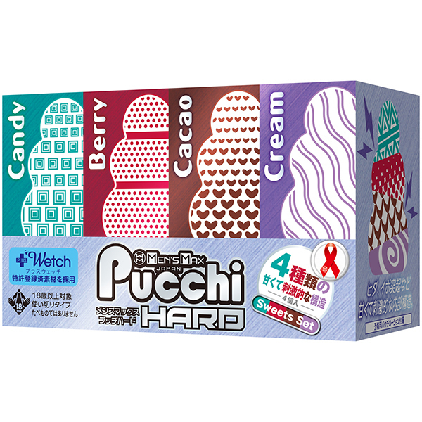プラスウェッチは独自開発の新素材。水をつけて軽く擦ることで内部の超ミクロサイズで閉じ込められた「潤いゼリー」が水に反応し、沁みだし樹脂表面をねっとりと潤い包みこみます。<デコボコ感さらにクッキリ。>「HD(High Definition)成形」で突起のデコボコ感がさらにクッキリになりました。突起に触れたときの粒立ちが違います。<キャンディー内部構造>「密集した四角錐の高刺激」整然と敷き詰められた四角錘の突起<クリーム内部構造>「吸い込まれるトルネード構造」斜めに擦り上げてくるヒダはクリームのように昇りつめる絶頂感<ベリー内部構造>「全体を覆う繊細で優しい突起」フワフワとした起毛が包み込みまったりしたなめらかな触感<カカオ内部構造>「反り返りのあるヒダの多層構造」ビッシリ並んだヒダは反発しながら複雑に絡みつく刺激
