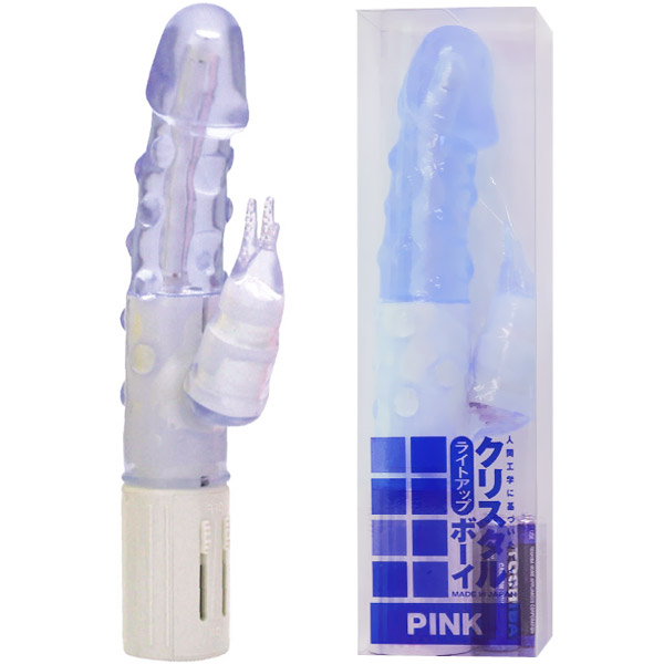 人間工学に基づいた最先端のバイブ「クリスタルボーイ ブルー」。美しいスケルトンボディは暗闇でも怪しく光り輝き、ムードは盛り上がること間違いなし。本体の表面の大粒のイボイボに加えて、カリの直径は約3.8cmと存在感抜群!クリバイブにいたっては3枚舌仕様。さらに、スイングとバイブの個別動作が可能…と、至れり尽くせりの上級者向けバイブです。単3電池×3本使用。