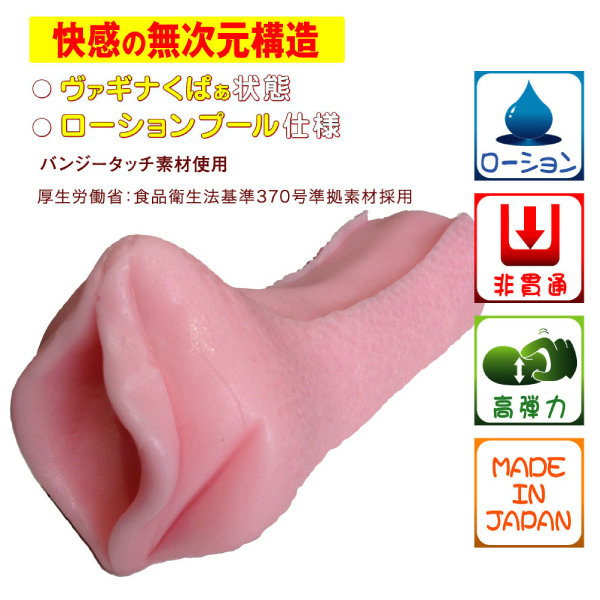快感の無次元構造!バンジータッチ素材とローションプールが特徴の非貫通型オナホールです。柔軟性に優れた柔らか素材を採用し、ヒダやイボが複雑に配置された無次元系の刺激を味わえます。くぱぁ状態の入り口はローションが入れ易くて漏れにくい形状ですので、ローションをたっぷりと使用してお楽しみ頂けます。さまざまな刺激や工夫が詰め込まれたこだわりのオナホールです!
