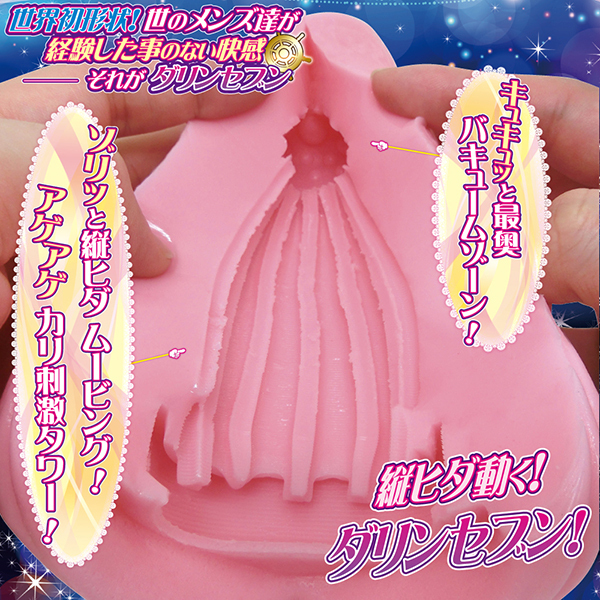 初代ヴァージンループの発売は2013年。発売から数年を経ても色褪せない売れ筋商品のヴァージンループから、装いも新たに想像を超える快感タイプのニューモデルが登場しました!こちらのダリンセブンは初代と同じ「バンジータッチ」を採用しており、全6種類の中でも一番オリジナルに近く、そして全く違う内部構造として進化を遂げた逸品です。外観はフロントに重心を持たせたオナホらしい造型ですが、内部構造は6本のロング縦ヒダをメインにした繊細なヒダ刺激と大縦ヒダが特徴で、むっちりやわらかなボディ素材とのコンボで圧着するようなバキューミングとヒダの気持ちよさを同時に味わわせてくれます!グリップ部分は和紙のようなテクスチャで握りやすく、ストローク時にはサオ全体にゾリ感刺激が走るのが特長で、最奥に待ち構える大ツブのイボによる刺激と射精感はこれまでにない開放感となっています!徹底的にヒダを追求した新たな快感の非貫通型オナホール。無限の快感世界をぜひお試し下さい!