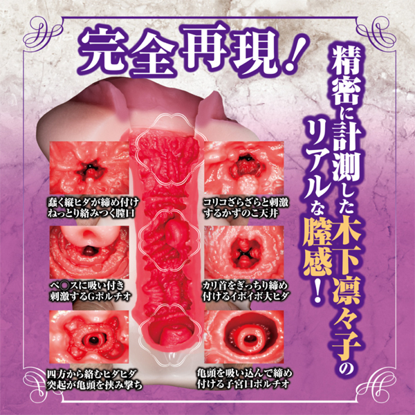 清楚系むっちり熟女『木下凛々子』の生採取系、非貫通オナホール!精密に外性器を型取りし、膣圧サイズや性器色まで測定をしっかり行い再現した挿入口の造形やビラビラは完全なリアルさで、内部構造もリアルさと名器仕様をミックスした快感ギミックで射精感もバッチリ!蠢く縦ヒダが締め付け、ねっとり絡みつく膣口がペニスに吸い付き刺激する、Gポルチオ!コリコリざらざらと刺激する、かずのこ天井で、カリ首をぎっちり締め付けるイボイボ大ヒダ!四方から絡むヒダヒダ突起が亀頭を挟み撃ち、亀頭を吸い込んで締め付ける子宮口ポルチオ!更に『木下凛々子』の淫臭ローション&生写真2枚付き。