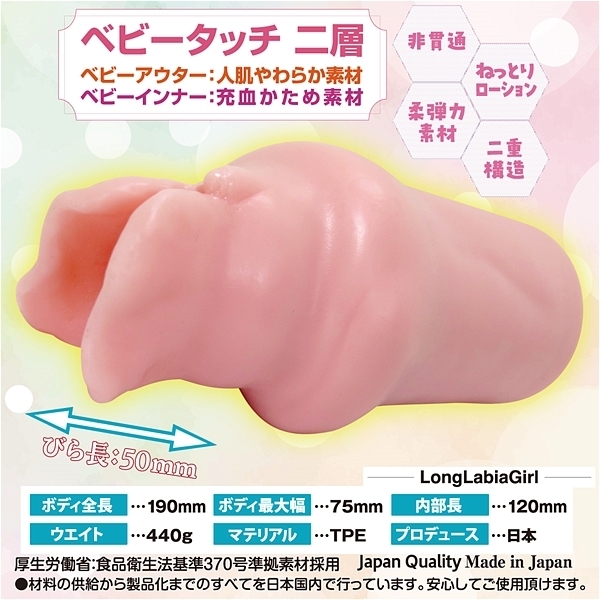長〜いビラビラがギュっと包み込む、ビラビラ系オナホール。充血二層の凸凹がたまらない…ぐにゅぐにゅ膣丘でザワめくザラ刺激。個々の鋭角なヒダ丘がじんわり背筋ゾクゾクMAXへ招いてイク。いやらしく伸びたビラビラはぴたぴたと過敏に刺激していつも以上の興奮度。ハード素材をソフト素材で覆う事で圧は外に逃がし触れる部分のみがハードエッジを保ちます。長いビラビラと真っ赤に紅潮したリアル内部でテンションMAX間違いなし!