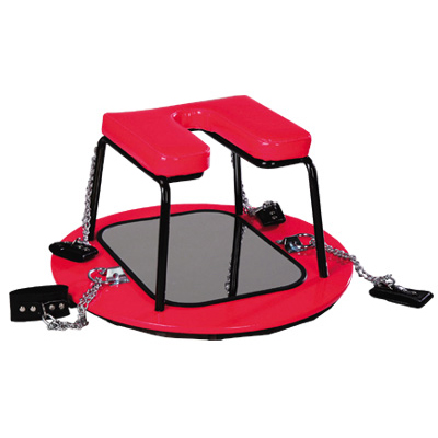 強制開脚の拘束椅子。背もたれの無い、スタイルフリータイプ「凌辱開股SMチェア」です。赤い丸形の台座には手枷と足枷がついていて相手を完全に拘束する。椅子の下には晒しミラーが付いており、左右に分かれた椅子の間から局部が丸見えに…。※こちらの商品は受注発注品となっております。また大型商品の為、送料が別途必要になります。