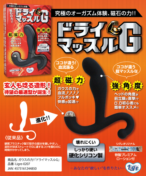 究極のオーガズム体験!通常のドライグッズと違い、先端に磁石がついています。前立腺を刺激しながらの血流UPが期待できます。硬化シリコンを採用しているので、衛生面も硬さも言うことなし。「超磁力」ガウスの力で血流アップ!フルボッキ♪快感が加速!?「強刺激」ヘッドの角度が前立腺に直撃!?D・O初心者にも簡単オススメ!