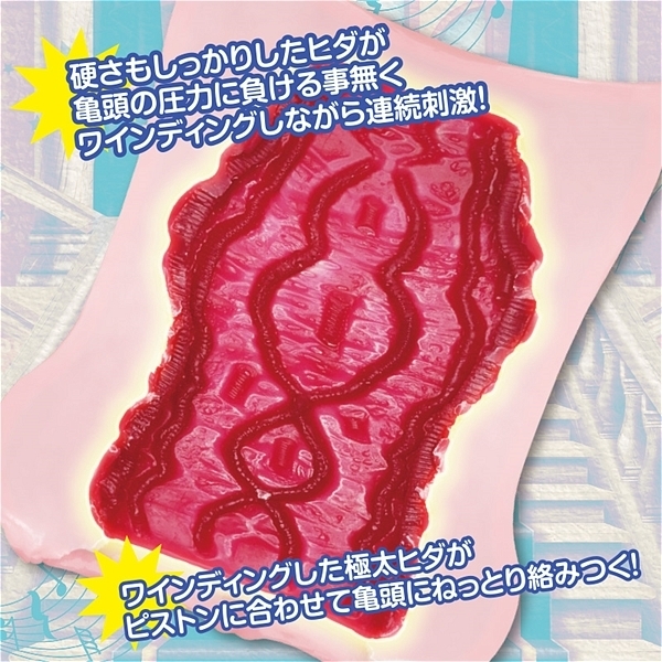 湾曲した内部構造に筋ヒダの二重構造!「ワインディング輪舞」の登場です!外は柔らかく、中はハードの二重構造。そして500gの大ボリューム!内部はしっかりテンションがかかるように絶妙のワインディング!二重構造の筋ヒダが亀頭に絡みついて離さない!どこを通っても亀頭全体にテンションがかかる絶妙造形!流れるように筋ヒダがピストン運動に合わして亀頭にねっとり絡みつく。500gのボリュームの肉厚がそれをさらに倍増させる快感へ導く!握り具合でさらに快感が増す。硬さもしっかりした筋ヒダが、亀頭の圧力に負ける事なくワインディングしながら連続刺激!これはもはやオナホの輪舞だ!このオナホで亀頭とオナホがスムーズにリンクし結合する!亀頭とオナホで輪舞が始まる!絶妙の快感の前にオナホの新時代が開く!ッチュ!