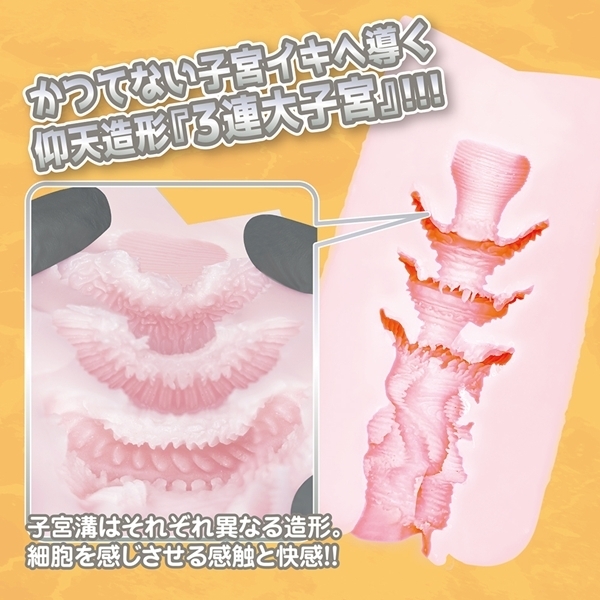独自の構造と重厚な設計が魅力の非貫通オナホです♪内部には大きく深く設計された子宮ゾーンが3層連続で配置されています!入口は竜巻のようなスパイラル造形で、挿入時からしっかりとした密着感が味わえます♪奥へ進むごとに変化する構造が、メリハリのある使用感を演出します!各層は子宮と細胞をテーマに作られており、しっかりとした刺激が楽しめます♪全長約165mm、重量約400gと手になじむしっかりしたサイズ感も魅力です!抜き時にはカリにかかるテンションが程よく、最後まで快適に使えます♪素材はエラストマーを使用し、リアルな感触とメンテナンス性を両立しています!日本製の丁寧な仕上がりと、ローション付属で届いてすぐに使える仕様です♪細部にまでこだわった造形で、セルフケアタイムをより豊かに彩ります!新しい快感体験を求める方におすすめの一本です♪