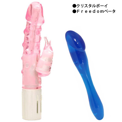 @人間工学に基づいた最先端のスケルトンバイブ「クリスタルボーイ」。A超人気!初心者さんにも安心な、ソフト素材のスティックディルド「Freedom(フリーダム)ベータ(β)」。※(k00039)、(t10209)のセットとなります。