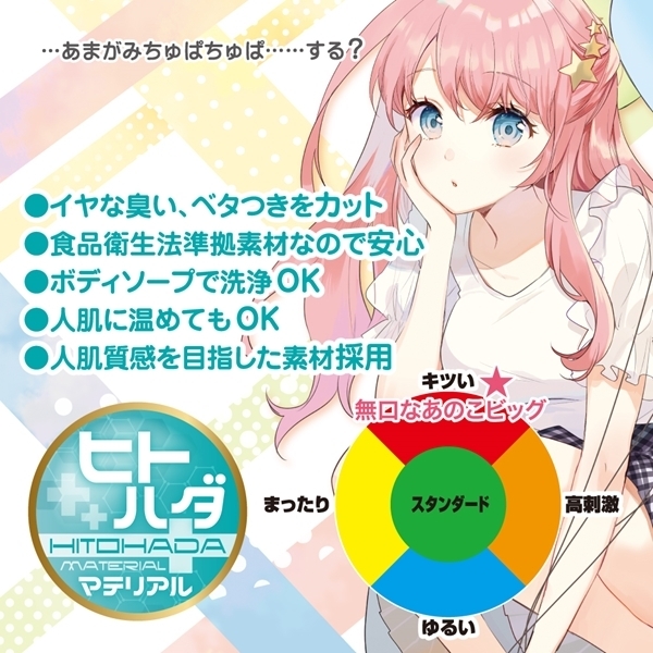 高刺激で好評の「無口なあのこ」が大きくなって新登場。上下に設置されたイボ突起がサオを軽く甘噛み、奥の子宮口でチューっと吸い付き刺激♪素材には高品質で耐久性に優れたヒトハダマテリアルを採用!程よい弾力でもっちり肉厚ボディの気持ちいい非貫通オナホです。