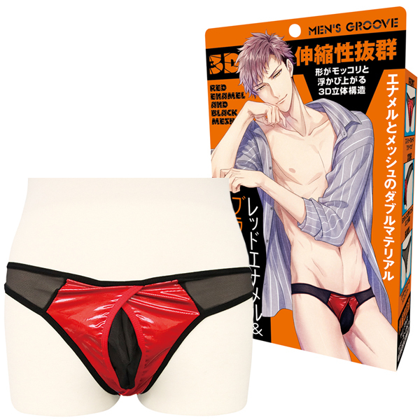 艶やかなエナメル素材と涼し気なメッシュ生地を組み合わせたバイカラーのメンズショーツ(赤×黒)。伸縮性のあるフロント部分は形が浮かび上がる3D立体構造!フリーサイズ●メーカー型番:MENG-019