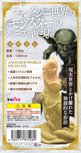まるでファンタジー世界から飛び出したかのような、不思議で独創的なアイテム♪ゴブリンをモチーフにした斬新なデザインは圧巻です!細部までこだわり抜かれたディテールが魅力的♪あなたのお部屋を異世界感たっぷりに彩ります!幻想的な造形美で、日常を特別な空間へとチェンジ♪存在感抜群のアイテムをぜひ手に入れてください!イラストレーター・りくば氏が手がける繊細なイラストにも注目♪異世界ディルドDXで、他にはない世界観を堪能しましょう!コレクションとしても最適な特別モデルです♪ファンタジー好きには見逃せない一品をぜひお手元に!●TMT-1787