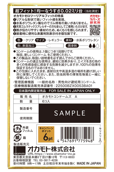 > オカモトゼロツー うすさ均一0.02 (リアルフィット) 6個入り