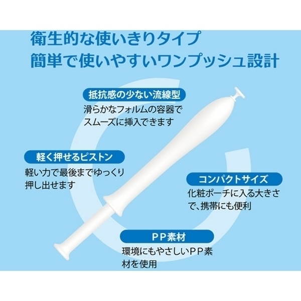 簡単ワンプッシュでスッキリ解消!どこでも使える新感覚ジェルタイプの膣内洗浄器「インクリア(10本入)」。●ビデに代わる膣専用ケアグッズ●一回一本使い切りの膣洗浄器●弱酸性&無香料の透明ジェル●自浄作用を高める乳酸を配合●洗浄ジェルをダイレクトに注入●直接触れずに使えるペン型容器●簡単かつ衛生的なワンタッチ式●使いやすいなめらかフォルム●婦人科医との共同開発で安心●携帯しやすい個包装×10本入り。ニオイやおりもの、乾燥が気になる時や生理の終わりかけにも!タンポンと同じような注入方法で気軽に使えるジェルタイプの膣洗浄グッズ。水で善玉菌も一緒に洗い流してしまうビデとは違い、洗わず直接注入して乳酸を補うことで膣内の自浄作用を高め、膣内環境の改善をサポートする新感覚のデリケートゾーン用ケアグッズです。