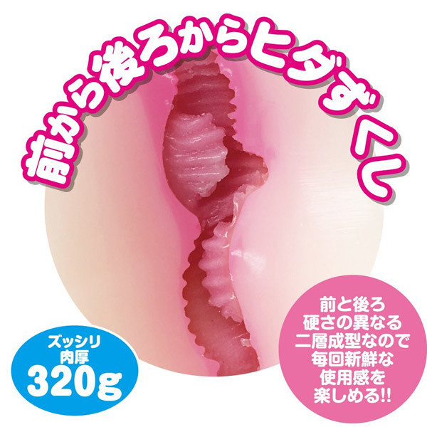 「ふわ」と「キツ」を両側から♪前半と後半で硬さの異なる貫通型オナホール。●硬さの異なる二層成型ボディ●両側から挿入可の貫通タイプ●前半はモチモチ絡みつく柔素材●後半は極キツの締め付け硬素材●ジョリヒダづくしの内部構造。ソフトorハード、今日はどっちからにする?異なる硬さの二層成型ボディで毎回新鮮に楽しめる肉厚オナホール。あいちゃんの匂いが詰まった同シリーズの香り付きローション(v01103)もご一緒にどうぞ。