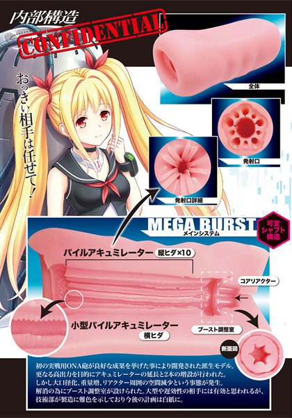 まるで回転拳銃の弾倉のような内部があなたの竿を刺激する「ona砲 mega burst」!縦のロングひだと横の浅いひだが楽しめる非貫通型オナホが登場。使用感はヴァージンループに近い構造のためか、刺激は強め♪シンプルな筒型の外観で重量385グラムと肉厚感もあるので安定したストローク感が楽しめます。最奥には子宮口を感じさせるゾーンがあるので、素材が慣れてくるとスムーズに挿入できそうです!