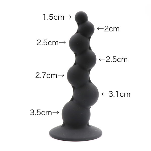 ビーズとして、ディルドとして、プラグとして!アナルで色々な刺激を感じられ葡萄のようなデザインが特徴の異型アナルディルドです!底部には吸盤もついているので、ゴツゴツとした挿れ心地を騎乗位スタイルや後背位スタイルでも楽しめちゃう♪段々と大きくなるビーズは小さく、細身ながら男性でも女性でも挿れ心地を堪能できます。さらさらでニオイやベタ付きのないシリコン素材を採用。[サイズ]15cm×6.5cm[ビーズサイズ]1.5cm、2cm、2.5cm、2.5cm、2.7cm、3.1cm、3.5cm