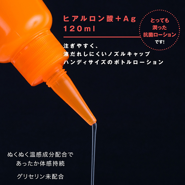 グリセリン未配合でお腹に優しい「A3アナルローション (HOT 120ml)」です。お肌に優しいヒアルロン酸と抗菌作用のあるAgも配合!非常に高い粘度が持続してぬくぬくと長くスムーズなプレイを楽しめます。容器が柔らかく使いたい量をしっかり出せるノズルタイプのキャップボトルを採用!注ぎやすく液だれしにくいハンディサイズのボトルローションです♪