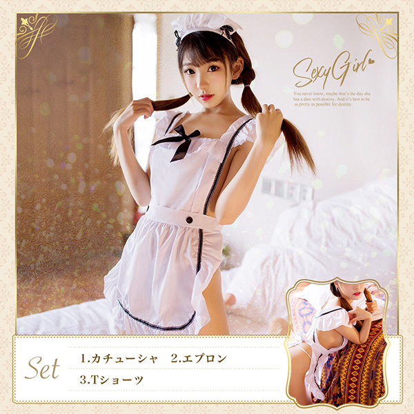 > コスプレ メイドエプロン 3点セット ホワイト