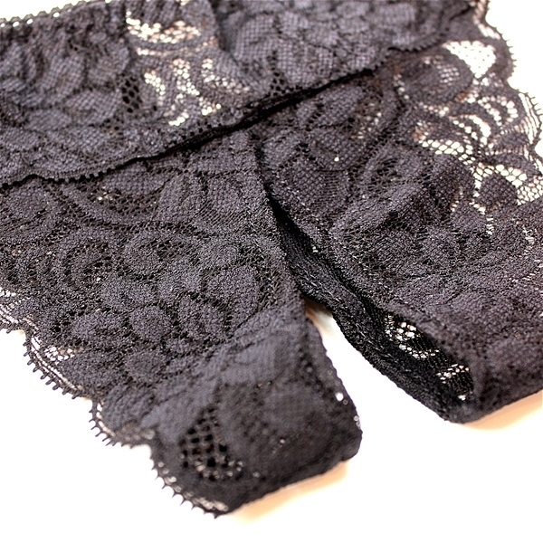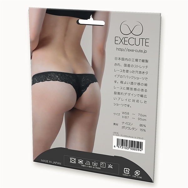 日本国内の工場で縫製され、国産のストレッチレースを使った穴あきタイプのTバックショーツです。程よい透け感の総レースと開放感のある股割れデザインで幅広いプレイに対応したショーツです。●カラー:ブラック