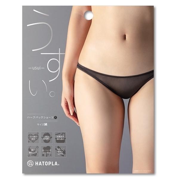 「身に、纏う、エロス。」究極に薄い。ハトプラのLINGERIEはあなたを優艶に演出してくれます。より、美しく。より、SEXYに。より、大胆に。まるで着けていないかのような軽さと透け感でLUXURYに輝きパートナーを魅了するでしょう。恥ずかしく…大胆に。輝かしく…上品に。●ハーフバックショーツ(黒)