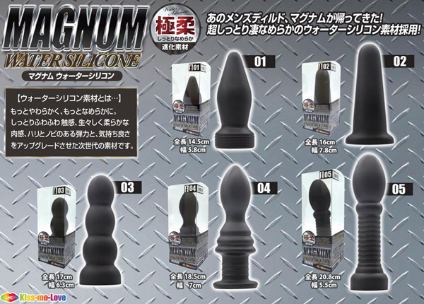 ブラックが冴えわたる本格派ディルドが最新素材になって新登場!極上素材を採用した「マグナム ウォーターシリコン」!黒い欲望を満足させるエキスパートなボディライン。その魅力をそのままに素材をグレードアップしました。シリコンを超える進化素材。超しっとり凄なめらか快感度を追求した進化素材、それがこのウォーターシリコン素材なのです。しっとりきめ細やかな質感に生々しい生体的な肉感弾力、人体や環境にも優しい安心材料。アダルトグッズのステージを高めべく進化したマテリアルです。熟練者向けのマニアな形状に極上の肉々しさをプラスしたゴージャスなディルドです。調教や拡張などのハードコアでエクストリームなプレイにぴったりなシリーズとなりました。「MAGNUM」の名の通りパワーあふれる快感をご体験ください。「05」は、太さ3〜5センチのドング型フォルム。強い刺激の灯篭フォルムが新しい快感を引き出す!
